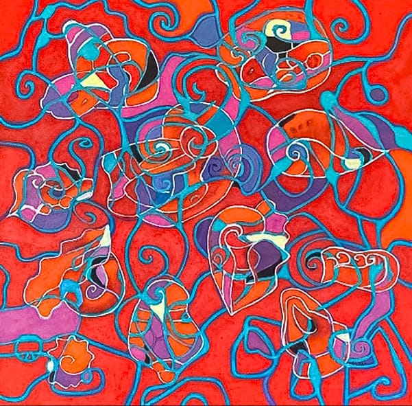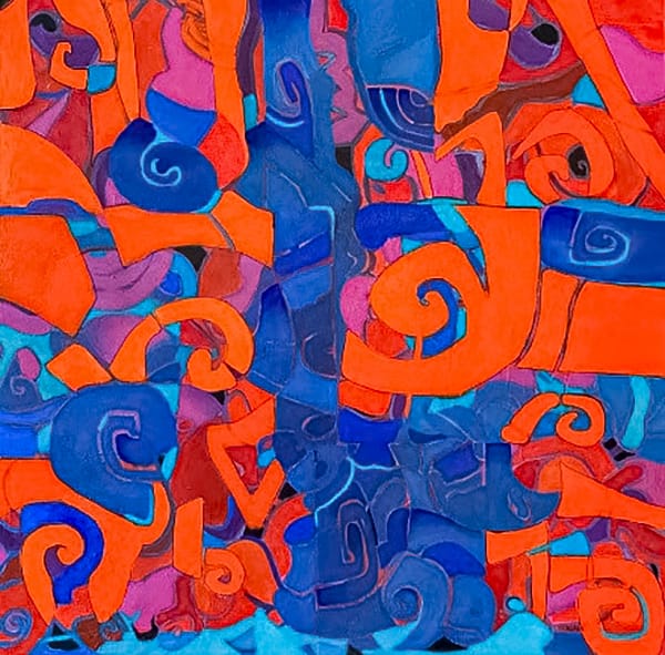 Está pintura representa la alegría y algarabía que descubren dos espíritus libres al unir sus corazones.