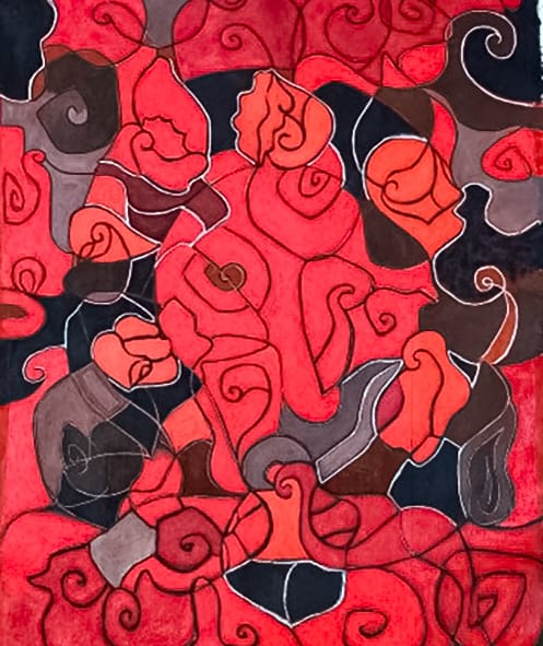 En esta pintura aparecen varias almas, las cuales cobran vida al unir sus energías. Todas se unen y forman un todo que los une.