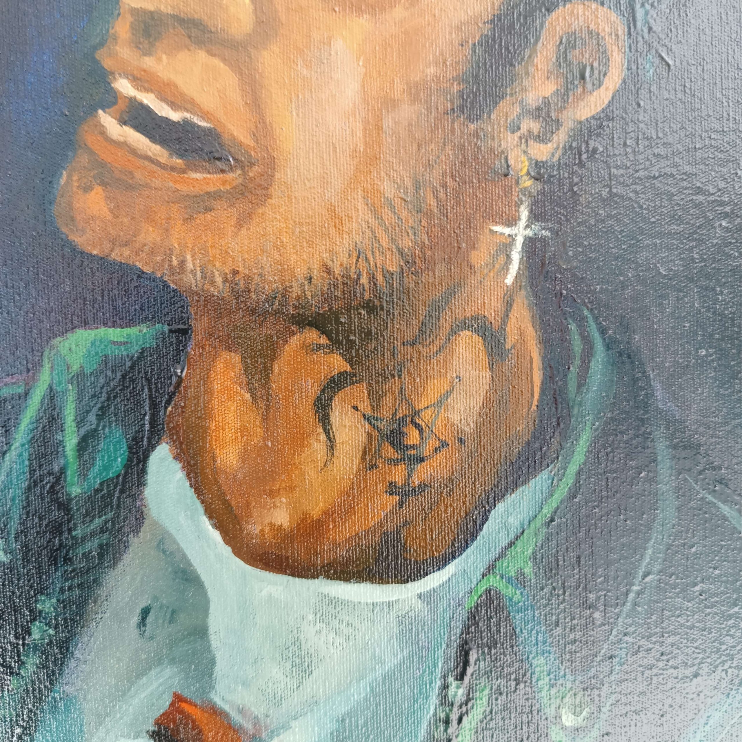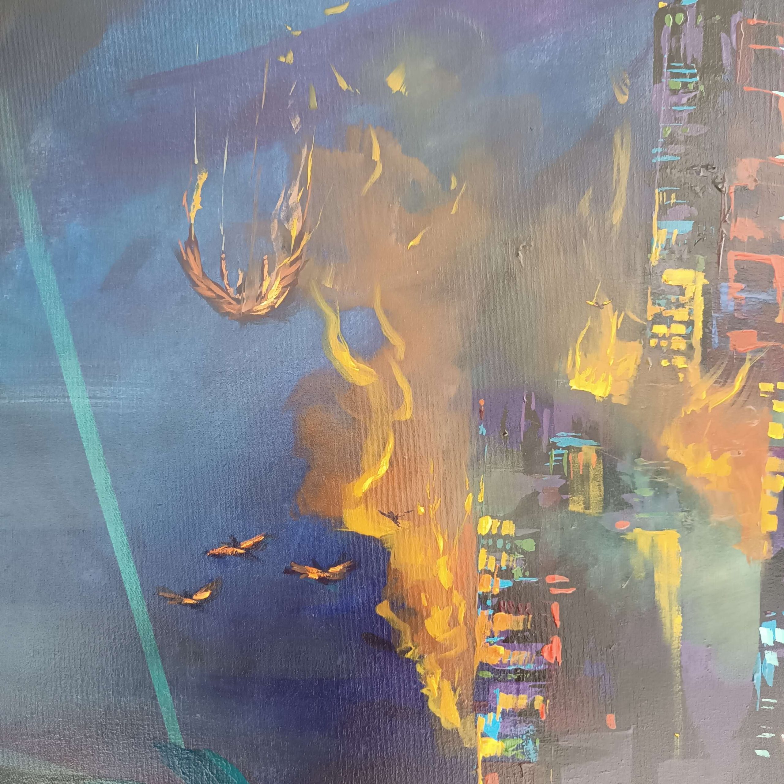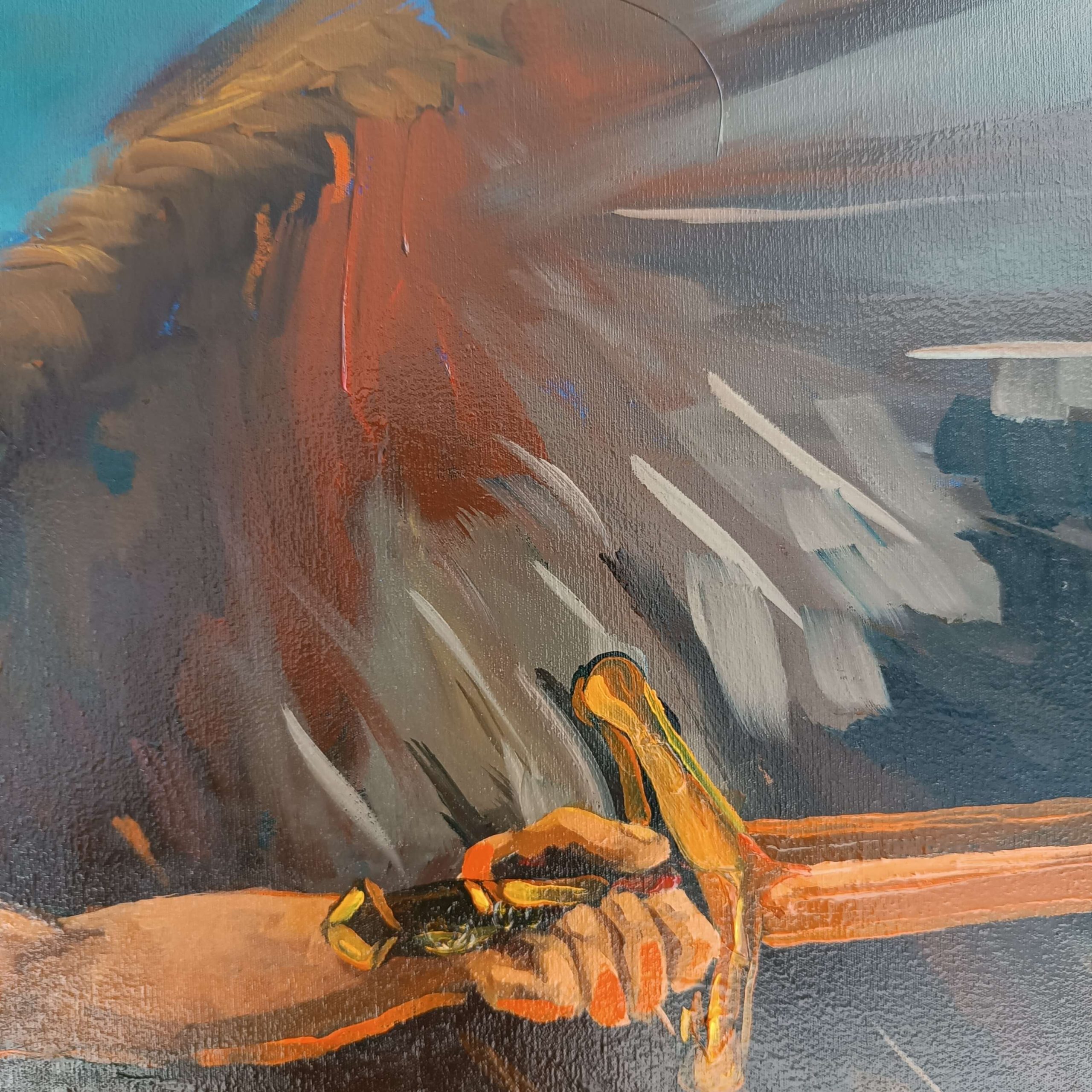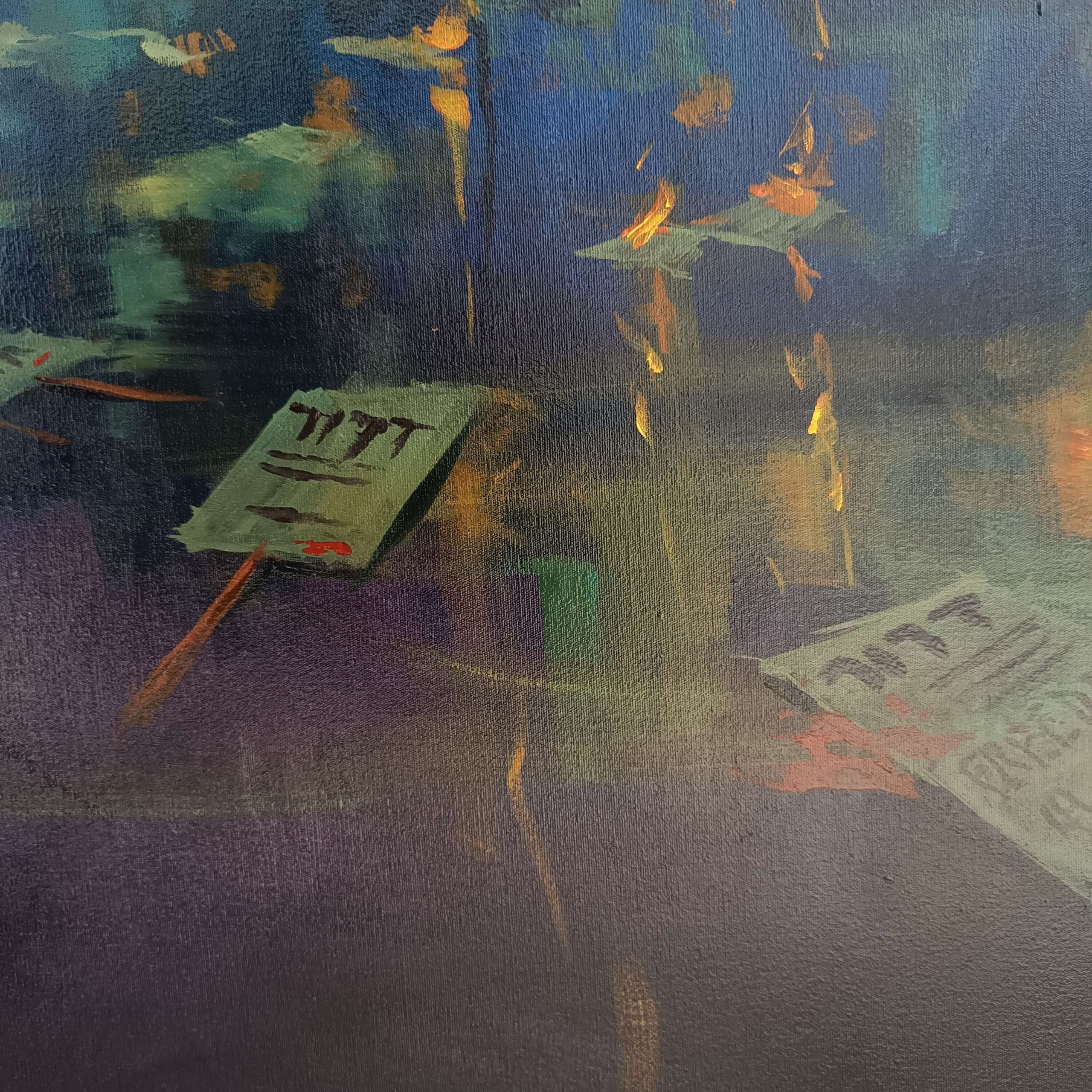 La obra integra inscripciones en hebreo y arameo como vestigios de una verdad antigua: palabras grabadas no como ornamento, sino como huellas de un pensamiento que antecede a la fe institucional. El símbolo del pez, las ruinas y las marcas corporales funcionan como rastros de una civilización espiritual en colapso.