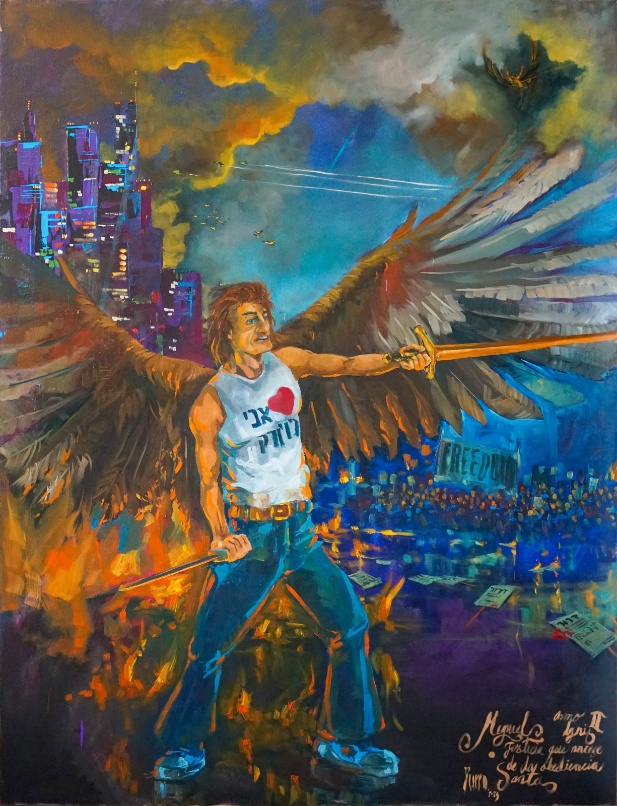 Miguel representa la justicia entendida como obediencia, la ley sostenida incluso a costa del sacrificio.